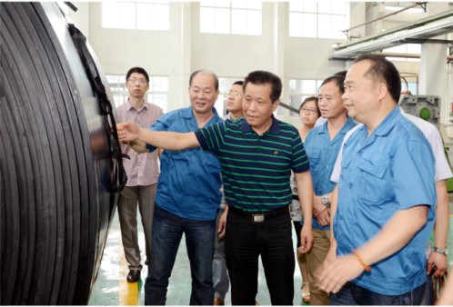 隨后,池曉明主席一行又參觀了公司鋼絲繩芯輸送帶車間,對公司的產品工藝流程、產品特性等有了更進一步的了解。