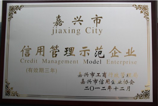 公司被授予“嘉興市信用管理示范企業(yè)”