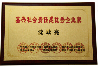 5月28日,在以“責(zé)任引領(lǐng)未來(lái)  共建誠(chéng)信嘉興”為主題的嘉興市首屆“最具社會(huì)責(zé)任感企業(yè)(家)頒獎(jiǎng)典禮上,一年多來(lái),通過(guò)大眾網(wǎng)絡(luò)、報(bào)紙投票和組委會(huì)評(píng)議,認(rèn)真篩選,層層選拔,最終誕生的嘉興最具社會(huì)責(zé)任感的企業(yè)和企業(yè)家以及優(yōu)秀企業(yè)和企業(yè)家各10名受到了表彰。我公司董事長(zhǎng)沈耿亮也獲此殊榮。