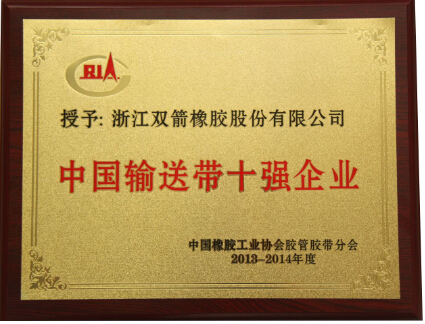 據了解,按照中國橡膠工業協會膠管膠帶分會制定的,輸送帶、V帶和膠管產品評定行業十強實施辦法(2014年修訂),經膠管膠帶專家組根據分層統計2013年和2014年上半年會員企業主要經濟技術指標完成情況確定入圍企業,對入圍企業及產品近年獲得首次各級各牌或馳名(著名)商標稱號、近年獲得國家與省市科技進步獎級別及次數、首次獲得各級高新技術企業認定資質,近年獲得本專業發明應用新型及外觀設計,專利授權件數及獲得中國橡膠工業協會質量授信復審等相關情況,打分綜合評定:浙江雙箭橡膠股份有限公司被評為2013-2014年度全國輸送帶十強企業首位。