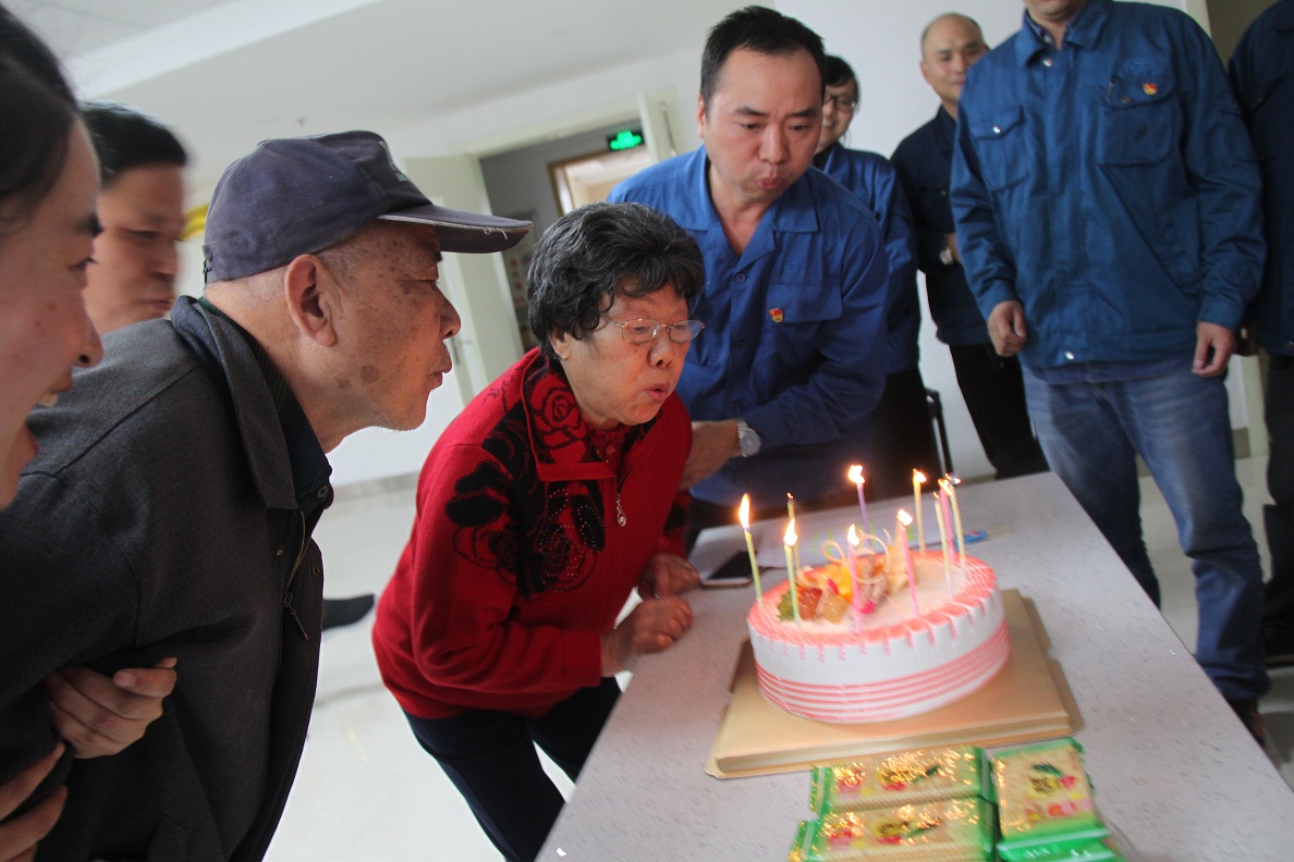 隨后,兩位壽星代表一起上臺(tái),與大家齊唱生日歌,在祝福聲中吹滅蠟燭,笑的像孩子般開心,大家一起吃蛋糕,共同分享著這份喜悅和幸福。看著眼前的蛋糕,聽著像自己子女一樣的生日歌聲,老人們很感動(dòng)。